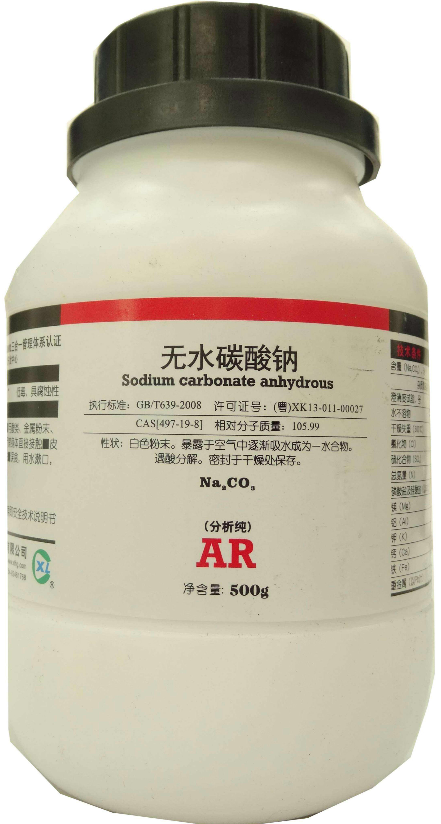 碳酸鈉 [497-19-8](Na2CO3),分子量105.99 ?;瘜W品的純度多在99.5%以上(質量分數(shù)),又叫純堿,但分類屬于鹽,不屬于堿。國際貿易中又名蘇打或堿灰。它是一種重要的有機化工原料,主要用于平板玻璃、玻璃制品和陶瓷釉的生產。還廣泛用于生活洗滌、酸類中和以及食品加工等。